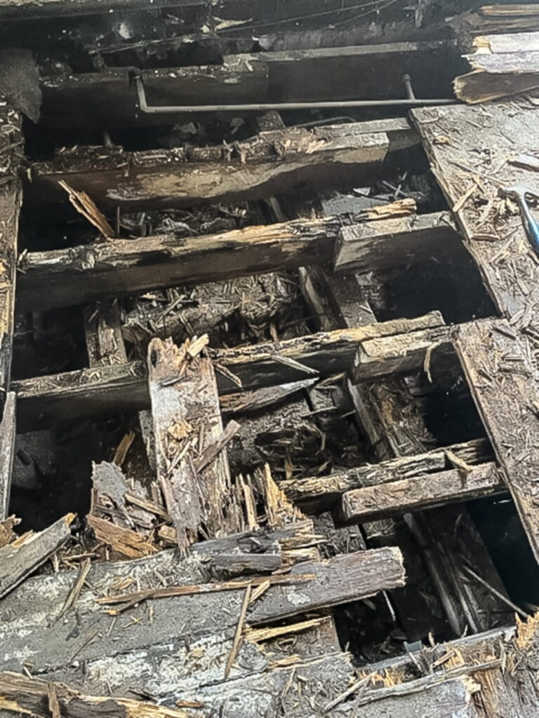 “When we lifted the boards the joists going into the front wall were basically gone,” he said. “Someone could easily have fallen through.”