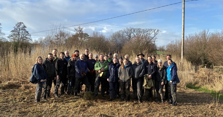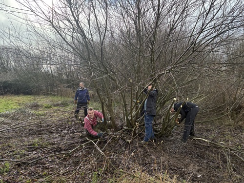 Despite wet and challenging conditions, 25 team members took part in a packed programme of habitat management activities, including a hedge-laying masterclass, coppicing and controlled burning. The group delivered work equivalent to approximately £1,000 in contractual value – an impressive contribution to the ongoing management and enhancement of this important local nature reserve.