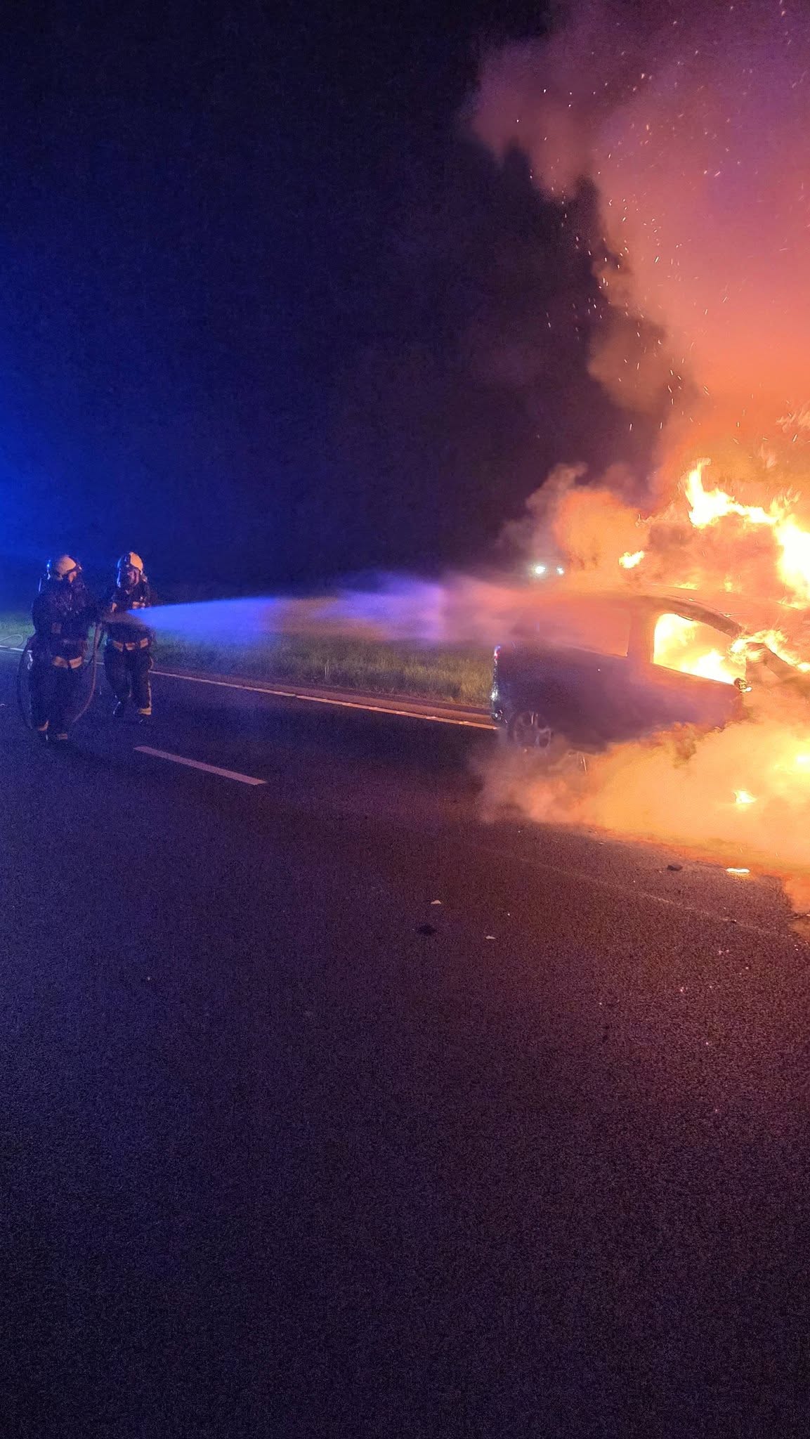 The crew arrived on scene just 21 seconds after being informed of the incident, where they found an internal combustion engine vehicle well alight, with flames and smoke issuing from all areas.