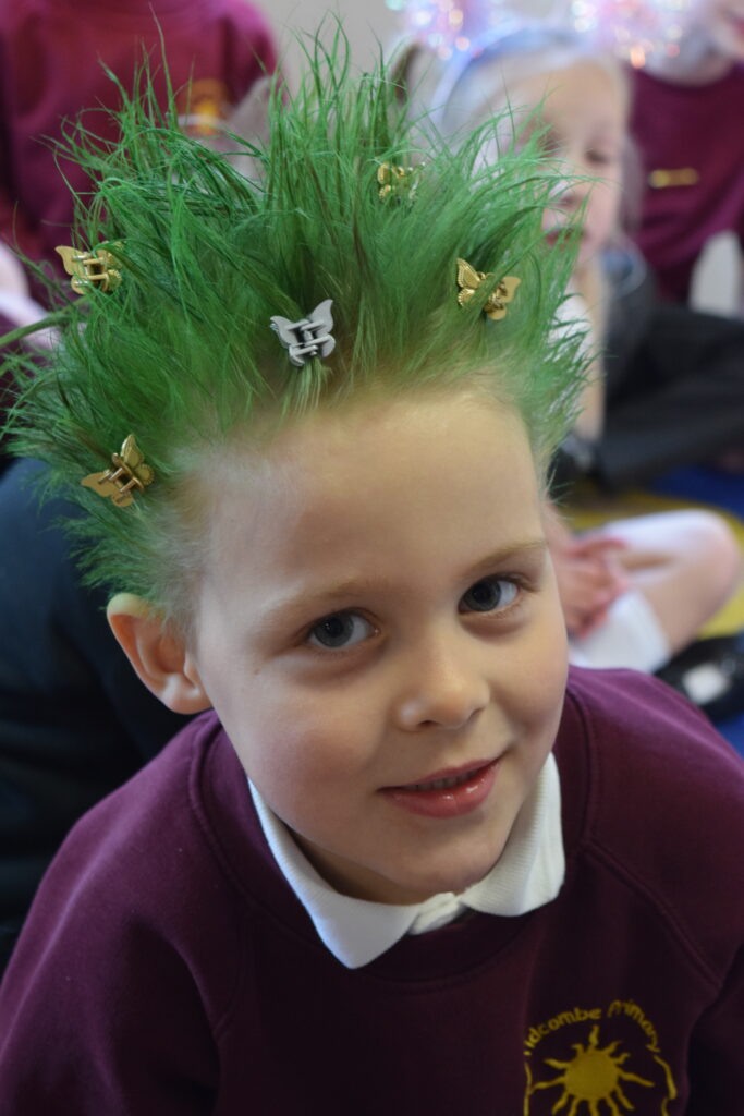 Tidcombe Primary in Tiverton said: “Today the children came to school with crazy hair, helping to raise money for Comic Relief.”