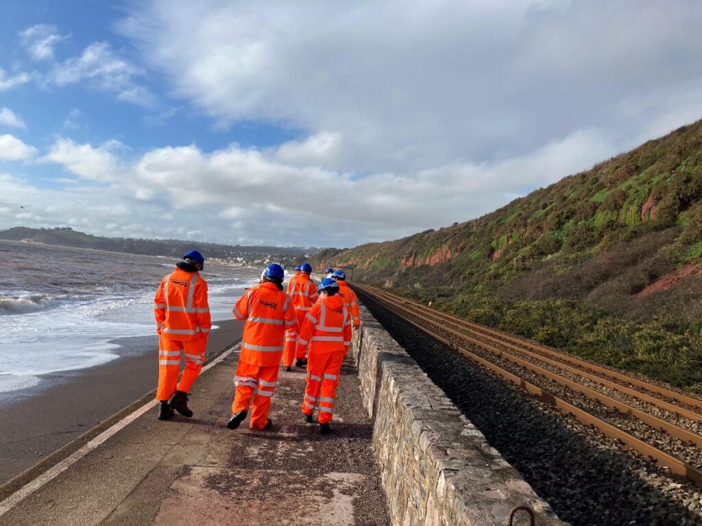 The following day began at the Dawlish sea wall, where students learned about coastal defence engineering and the challenges of protecting critical rail links from extreme weather.