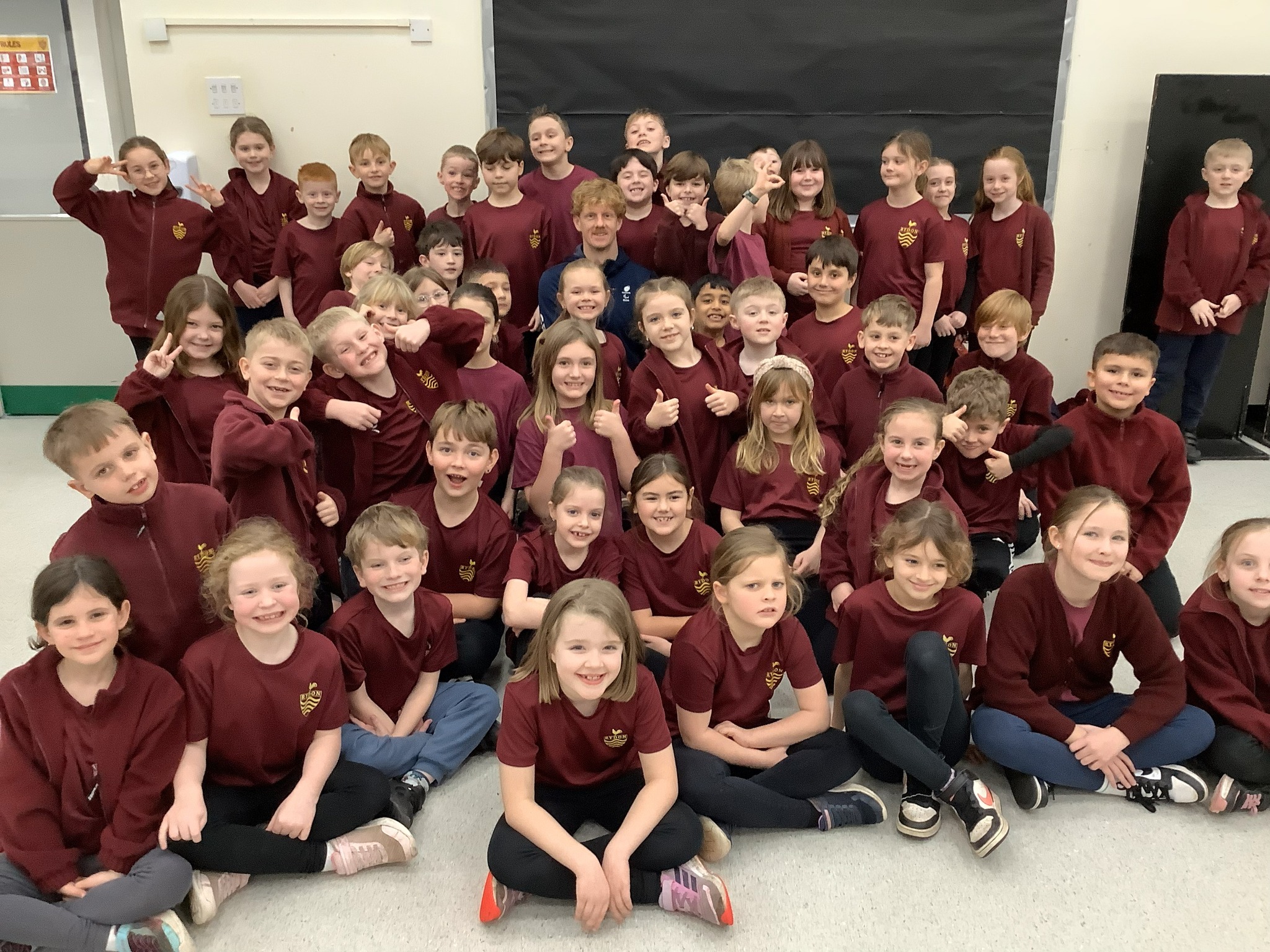 During the visit, children took part in energetic fitness circuits supported by the school’s Sports Leaders before gathering for a whole-school assembly where David shared his personal journey.