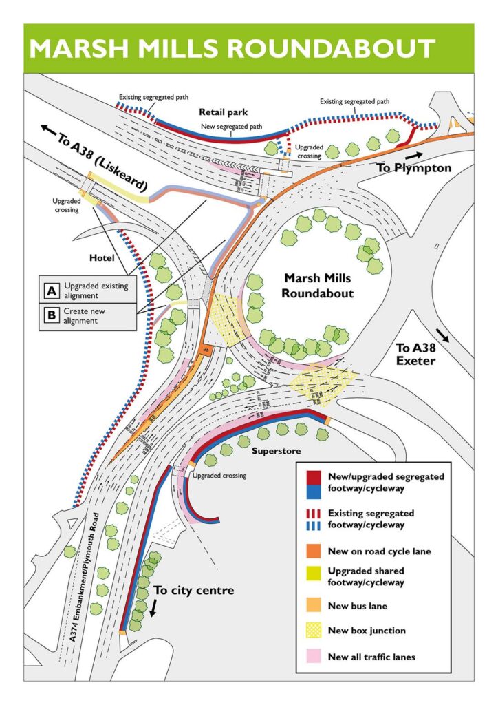 The plans are focused around three key sections along the route – Marsh Mills Roundabout, Embankment Road and the St Budeaux Bypass – and includes lane widening, junction capacity upgrades and new facilities for pedestrians and cyclists.