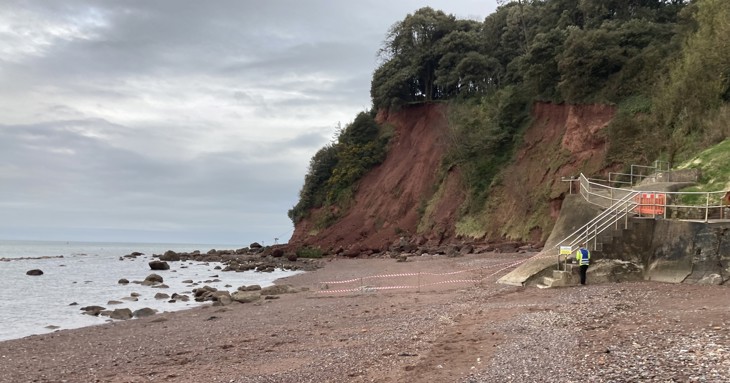 Our teams have inspected the area and installed warning signage and fencing for areas that have been closed for safety reasons. The section of the South West Coast Path that runs through the Ness woodland has been closed, and people are advised not to go onto the Shaldon beach at the site of the cliff fall in case of further landslips.
