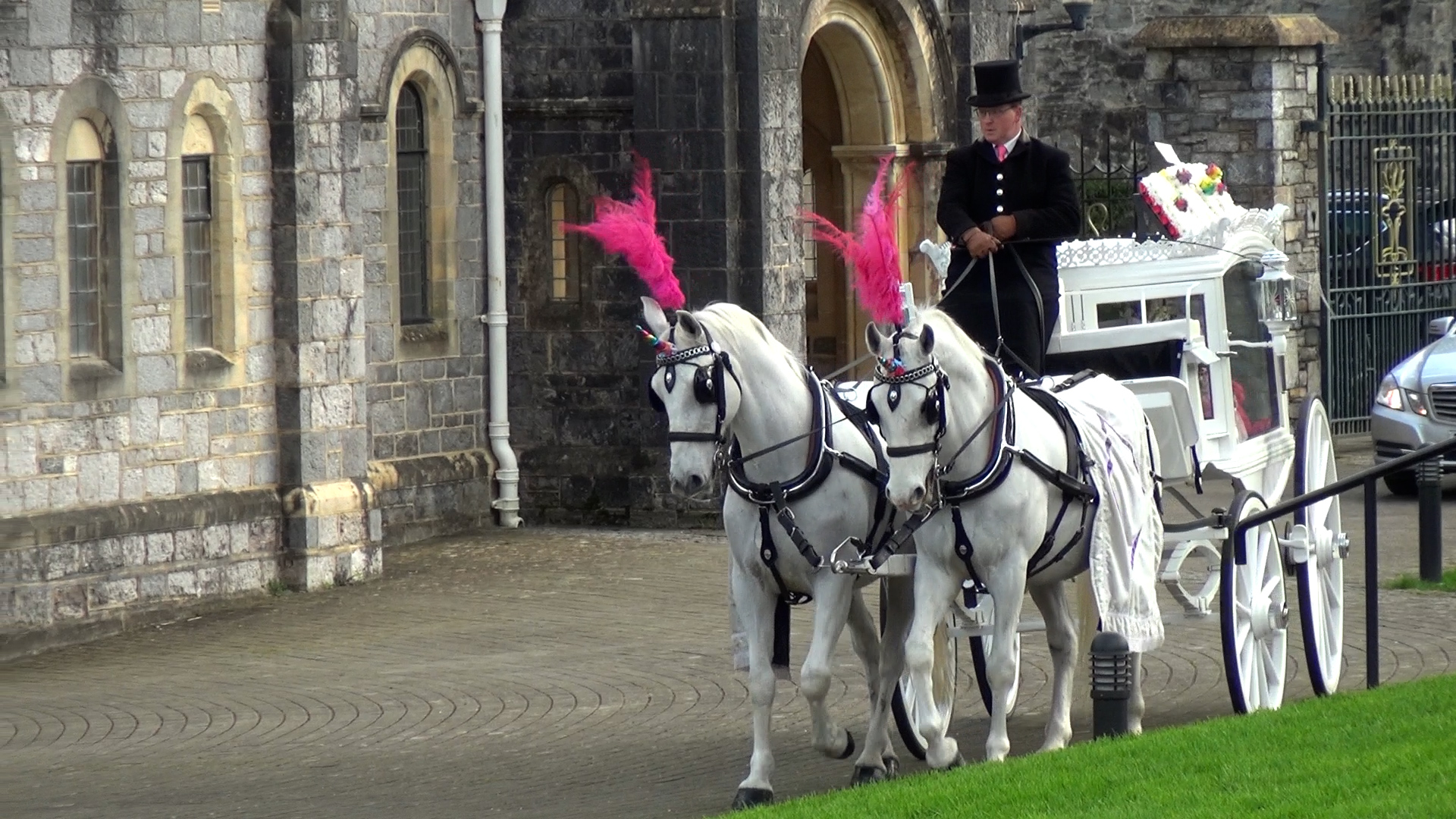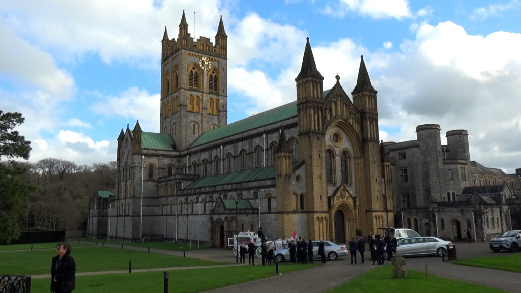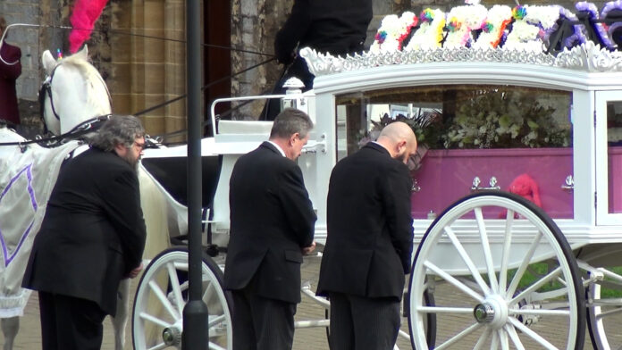The service took place at Buckfast Abbey and began at 2pm. White horses, dressed as unicorns, pulled a carriage carrying Katie’s pink coffin.